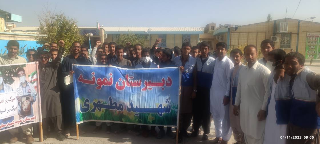بازدید گروه جهادی السابقون از دبیرستان نمونه شهید مطهری سراوان تجلیل از دانش آموزان برتر آزمون کانون 16 آبان ماه تبریک به پذیرفته شدگان آزمون ورودی دبیرستان نمونه شهید مطهری سیزدهمین همایش تجلیل از پذیرفته شدگان آزمون سراسری سالهای ۱۴۰۲ و ۱۴۰۳ دبیرستان نمونه شهید مطهری سراوان اعلام نتایج پذیرفته شدگان آزمون ورودی دبیرستان نمونه دولتی شهید مطهری در سال تحصیلی 1404-1403 اعلام نتایج پذیرفته شدگان آزمون ورودی دبیرستان نمونه دولتی شهید مطهری در سال تحصیلی 1404-1403 برگزاری جشن پیشرفت تحصیلی سال تحصیلی ۱۴۰۳-۱۴۰۲ برگزاری اردوی برون مدرسه ای به مقصد جاده سلامت برگزاری اردوی برون مدرسه ای بمقصد جاده سلامت بازدید معاون محترم آموزش متوسطه اداره کل و هیئت همراه بازدید مدیر و معاونین آموزشگاه از دبیرستان پسرانه دانشگاه بازدید دانش آموزان از کتابخانه عمومی شهید مطهری سراوان بمناسبت هفته کتاب و کتابخوانی بازدید دانش آموزان دبیرستان متوسطه اول شهید مطهری ناهوک از آموزشگاه
