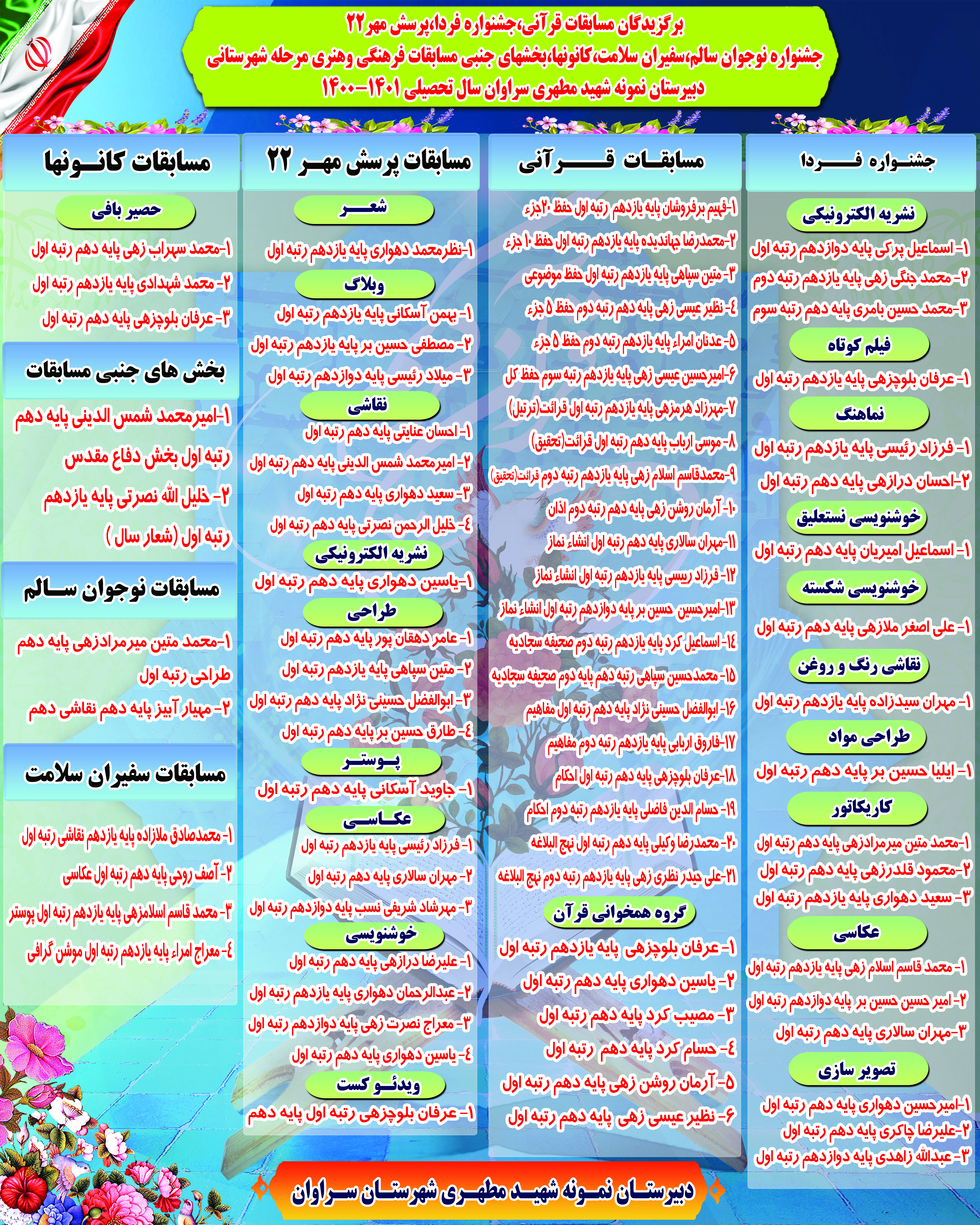 دبیرستان نمونه دولتی شهید مطهری سال تحصیلی ۱۴۰۱-1400